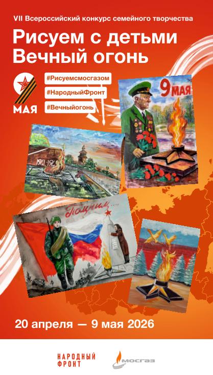 С 20 апреля по 09 мая 2026 г. проходит VII Всероссийский конкурс семейного творчества "Рисуем с детьми Вечный огонь"ПОЛОЖЕНИЕ КОНКУРСА.pdf
